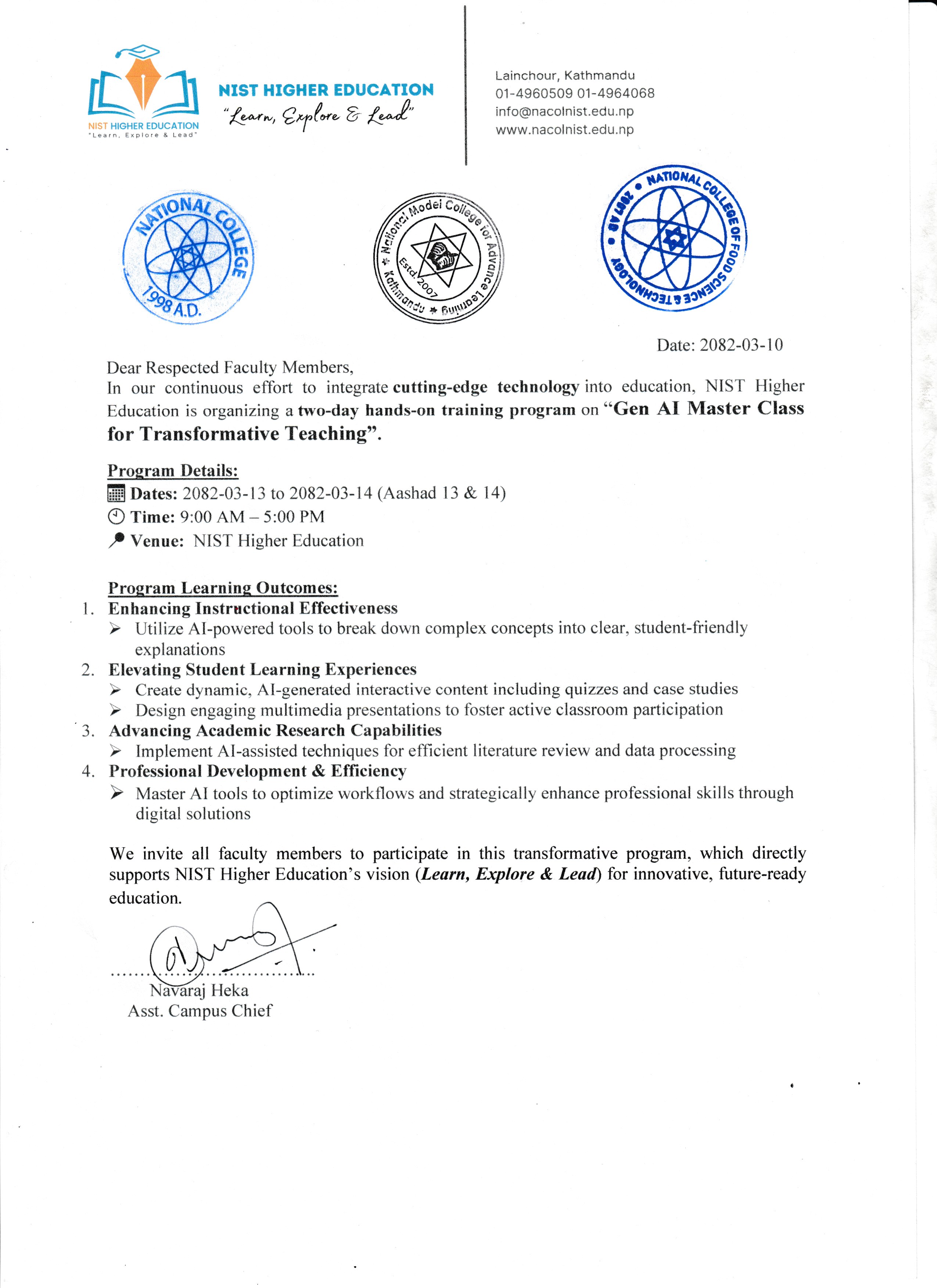 Gen AI Master Class For Transformative Teaching-to integrade cutting-edge technology into education